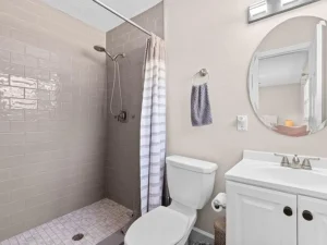 The primary bathroom showcases a new tile floor and updated light fixtures in select rooms, replacing the contractor-grade finishes with stylish upgrades. The inviting backyard serves as the heart of outdoor living, featuring expansive deck space, tropical landscaping, and an outdoor kitchen with durable Corian countertops and stainless steel sink. Whether you envision tranquil afternoons in the sun or vibrant weekend celebrations, this outdoor oasis offers plenty of room for play, gardening, and creating lasting memories.